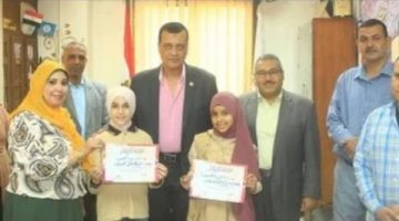 مدير تعليم سوهاج يكرم الطالبتين الحاصلتين على المركز الأول في مسابقة المسرح