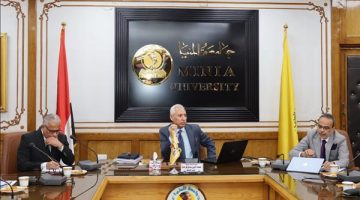 رئيس جامعة المنيا يناقش إعداد الخطة الاستراتيجية للجامعة 2026 – 2030