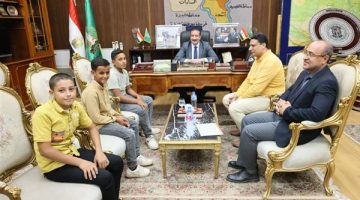 لقوا فلوس ورجعوها.. محافظ المنوفية يكرم ثلاث طلاب لأمانتهم ويهديهم مكافآت مالية