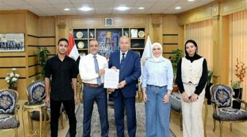 رئيس جامعة المنصورة يستقبل فريق مركز الحفريات الفقارية عقب اكتشاف “تمساح الوادي”