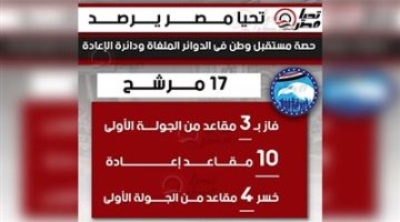 تحيا مصر يرصد حصة مستقبل وطن فى الدوائر الملغاة ودائرة الإعادة