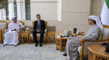 منصور بن زايد يستقبل رئيس مجلس إدارة مجموعة “سي إم إيه سي جي إم” الفرنسية