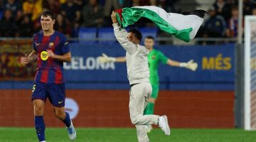 مشجع يقتحم الملعب بعلم فلسطين أثناء هدف برشلونة بمرمى خيتافي