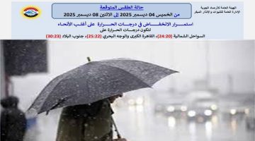 الأرصاد تحذر.. موجة باردة تضرب البلاد وأمطار متوقعة من الغد وحتى الإثنين 8 ديسمبر 2025