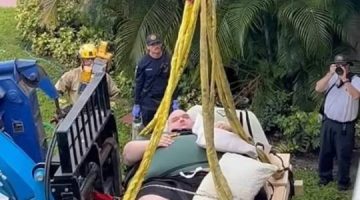 رافعة لإخراج أمريكي يزن 272 كلغ من منزله (فيديو)