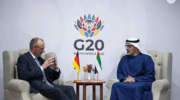 خالد بن محمد بن زايد يبحث مسارات التعاون مع المستشار الألماني (فيديو)