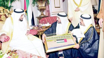 11000علم تُشكّل لوحة فنية للقائدين زايد وراشد